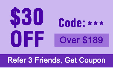 | 4. After you finish 3 refers, you can redeem 1 coupon of $30, or 3 coupons of $10, or 1 coupon of $20 and 1 coupon of $10. |