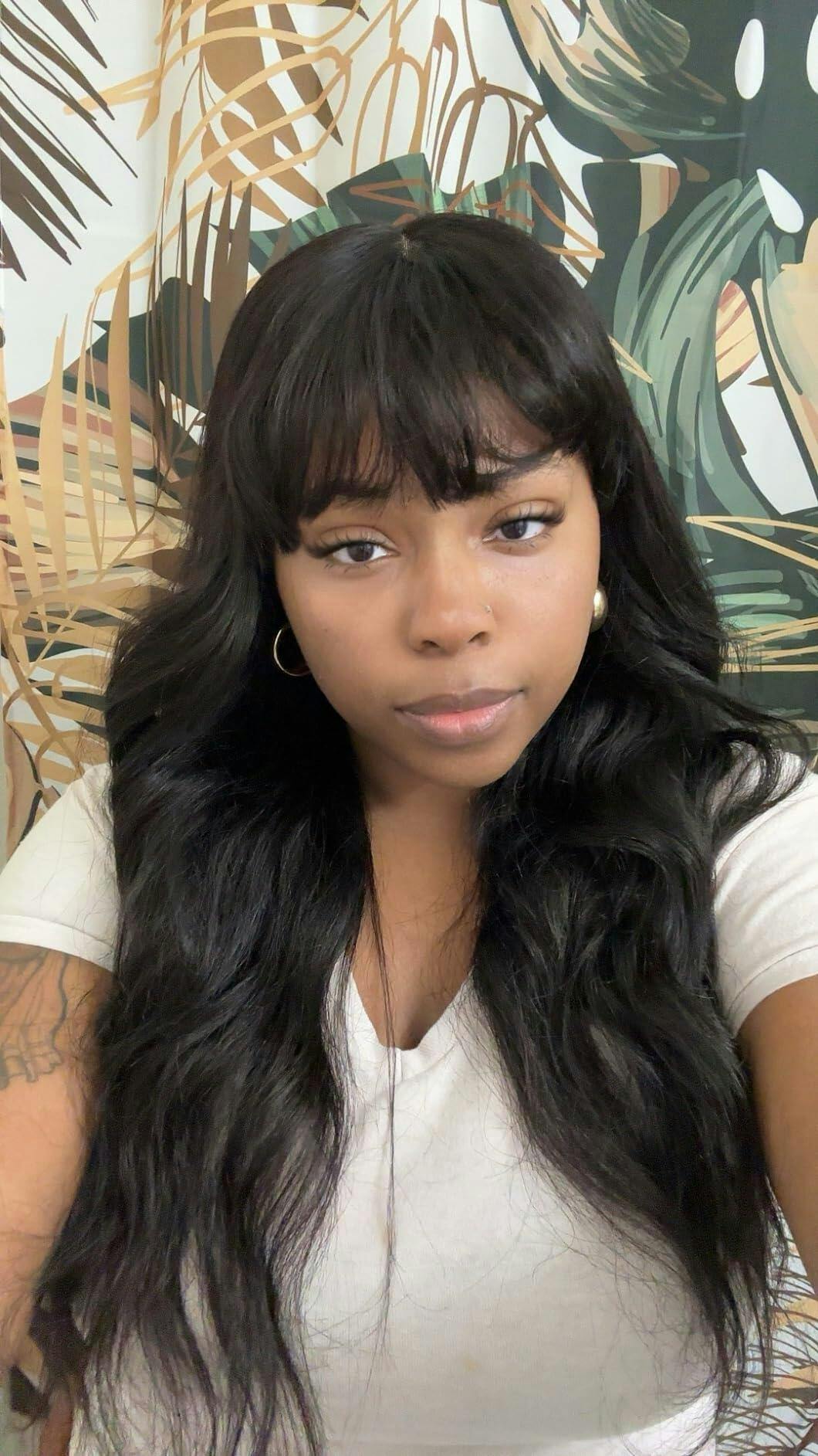 | Items Name: Body Wave Human Hair Wig With Bangs |